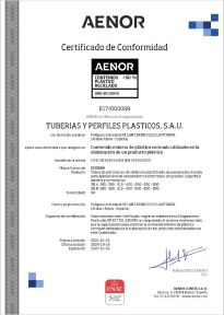 TUYPER dispone de un amplio abanico de certificados de calidad de producto conforme a diferente normas europeas (saneamiento, abastecimiento, riego, evacuación, drenaje, gas, electricidad y telecomunicaciones...).