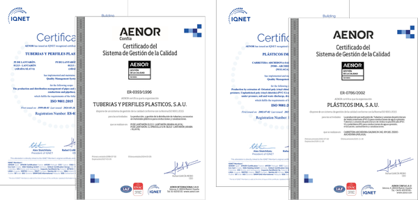 Certificado ISO 9001: garantiza el control del proceso, desde la recepción de la materia prima hasta el producto terminado. TUYPER tiene implantado un Sistema de Gestión de la Calidad según la norma ISO 9001 certificado por AENOR e IQNET.